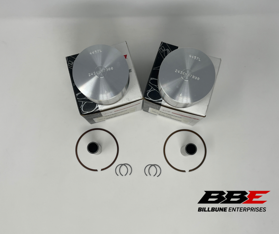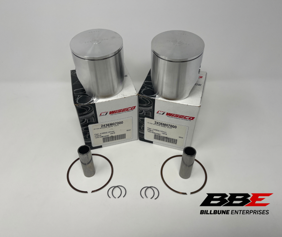 Wiseco .50mm / .020" Oversized 70.00mm Bore Piston Kits. Includes (2) Pistons, (2) Ring Sets, (2) Pins, (2) Pairs of C-Clips.