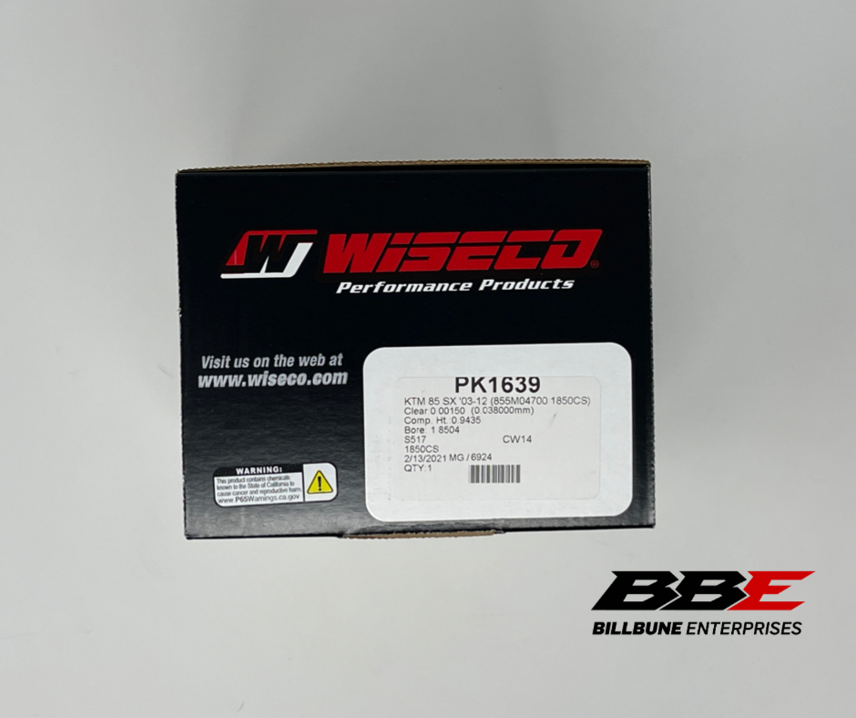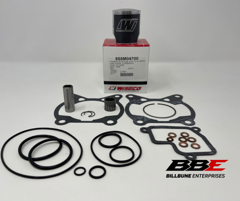 Wiseco stock / standard 47.00mm bore top end kit. Includes piston, rings, pin, clips, top end bearing, and top end gasket set.