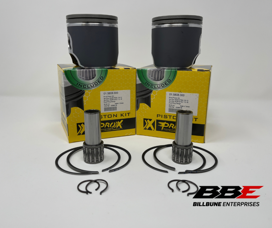 ProX Stock / Standard 82.00mm Bore Piston Kits. Includes (2) Pistons, (2) Sets of Rings, (2) Pins, (2) Pairs of C-Clip, (2) Top End Bearings.