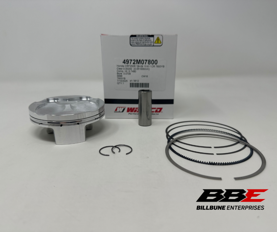 Wiseco Stock / Standard 78.00mm bore piston kit. 13.6:1 Comp. Includes piston, rings, pin, and clips.ITEM FITS: 2008-2009 Honda CRF250R
