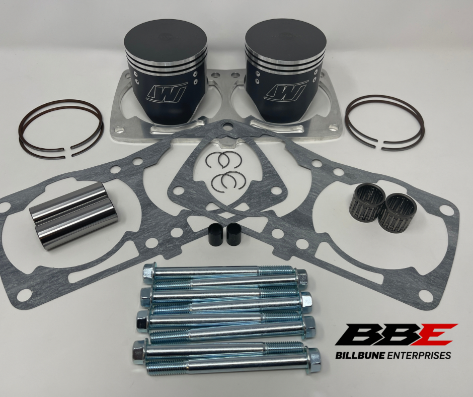New “Fix it” or “durability kit” With Wiseco Forged Stock / Standard 85.00mm Bore Piston Kits. Comes with (2) pistons, (2) sets of rings, (2) pins, (2) pairs of clips, (2) top end rod bearings, (1) Spacer kit (2 base gaskets, dowl pins, bolts, and spacer)