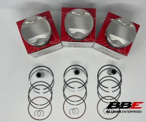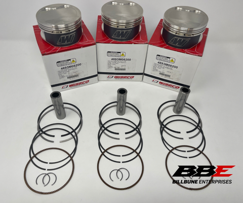 Wiseco 1049cc drop-in 82.00mm bore piston kits. 12.5:1 Compression ratio. Includes (3) pistons, (3) sets of rings, (3) pins, (3) pairs of c-clips.