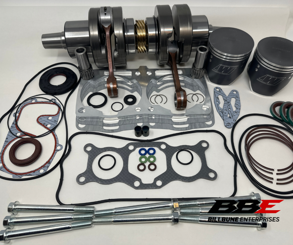 Brand New Hot Rods OE Crankshaft , ProX Complete Engine Gasket Set With Crankshaft Oil Seals, Wiseco Tall Durability 85.00mm Bore Piston Kits. Includes (2) Pistons, (2) Sets Of Rings, (2) Pins, (2) Pairs of Clips, (2) Top End Bearings, (1) Crankshaft, (1) Engine Gasket Set With Seals, (1) Durability / Fix it Kit.