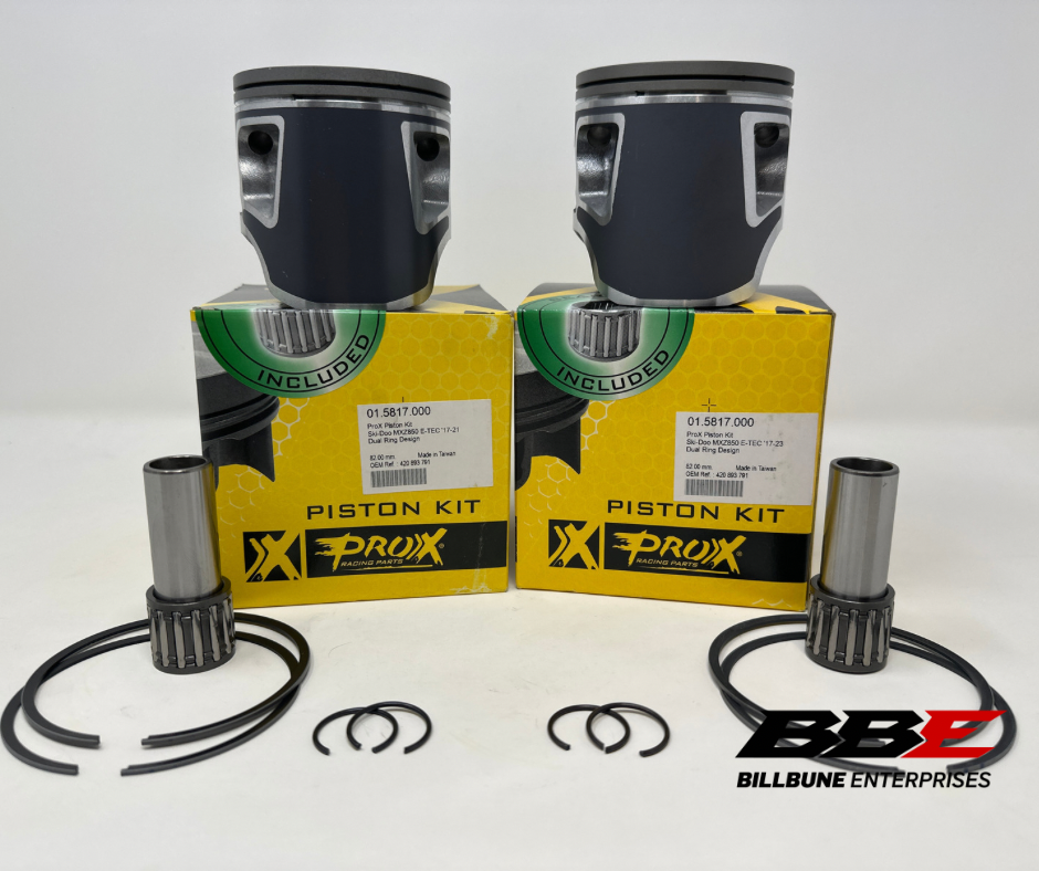 ProX Standard / Stock 82.00mm Bore Piston Kits. Includes (2) Pistons, (2) Sets of Rings, (2) Pins, (2) Pairs of Clips, (2) Top End Bearings. (Dual Ring Design)