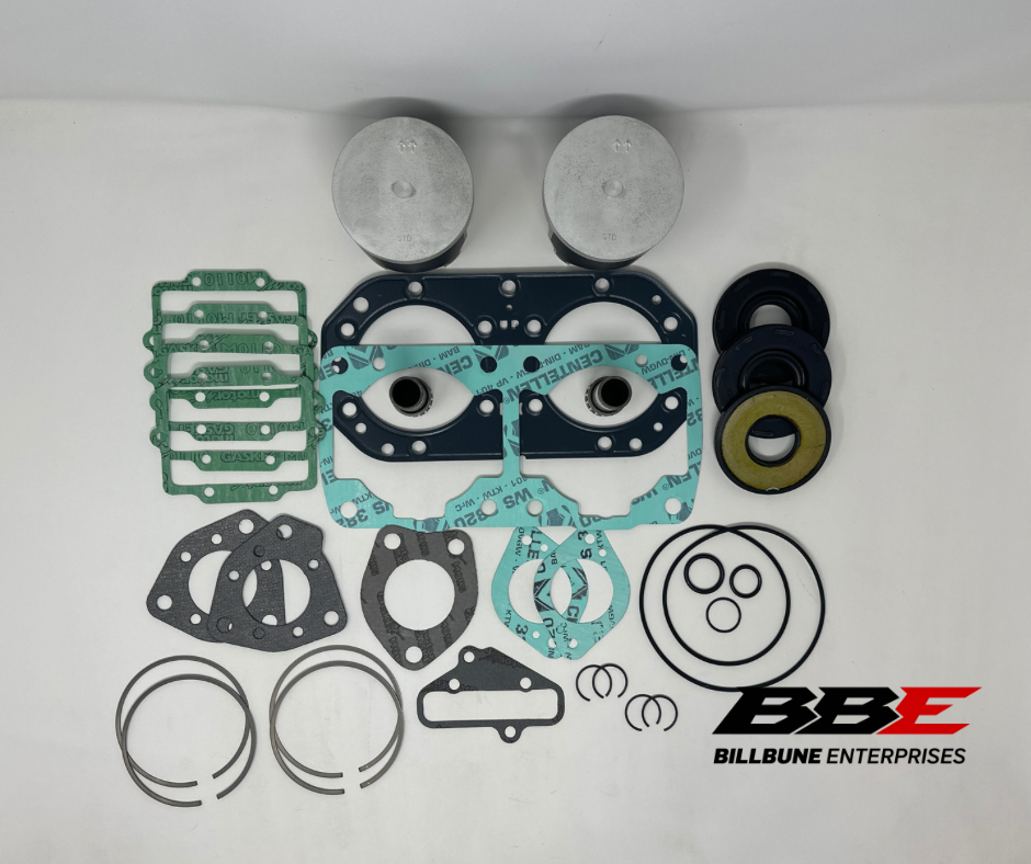 WSM platinum coated .50mm / .020” Oversized 80.50mm bore Engine Rebuild kit. Includes (2) pistons, (2) sets of rings, (2) pins, (2) clips, (2) top end bearings, and (1) Complete gasket set with Crankshaft Oil Seals.