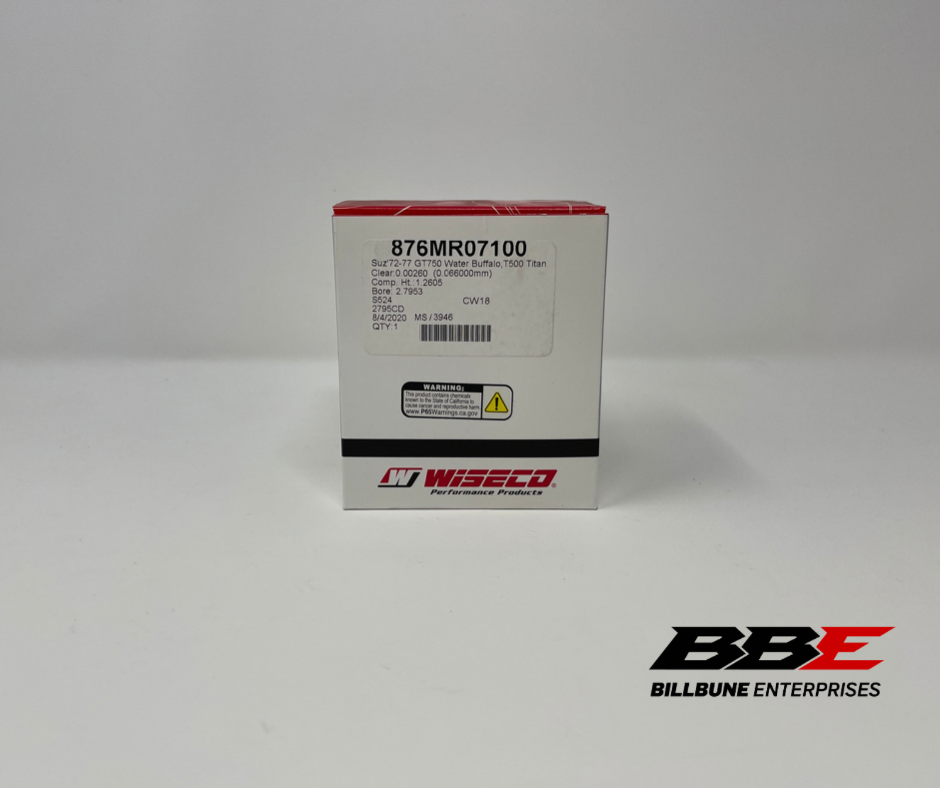 Wiseco 1.00mm / .040" oversized 71.00mm bore right side piston kit. Includes piston, rings, pin, and clips. ITEM FITS: 1969-1975 Suzuki T500, Titan *Some top guided models require spacers