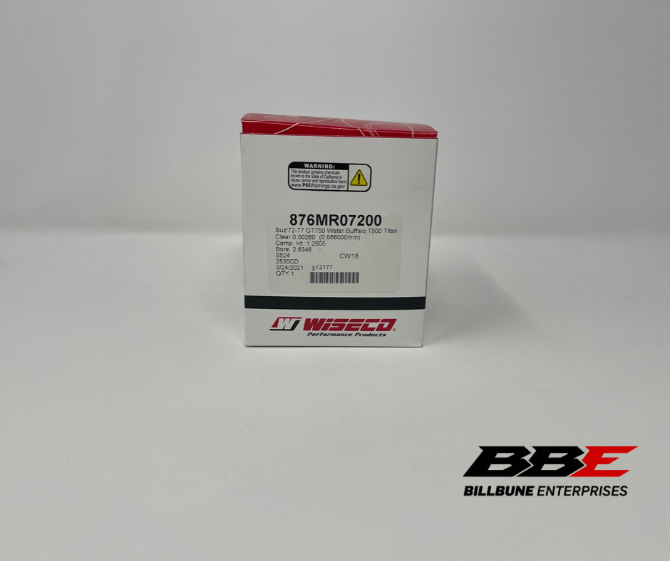 Wiseco 2.00mm / .080" oversized 72.00mm bore right side piston kit. Includes piston, rings, pin, and clips. ITEM FITS: 1969-1975 Suzuki T500, Titan *Some top guided models require spacers