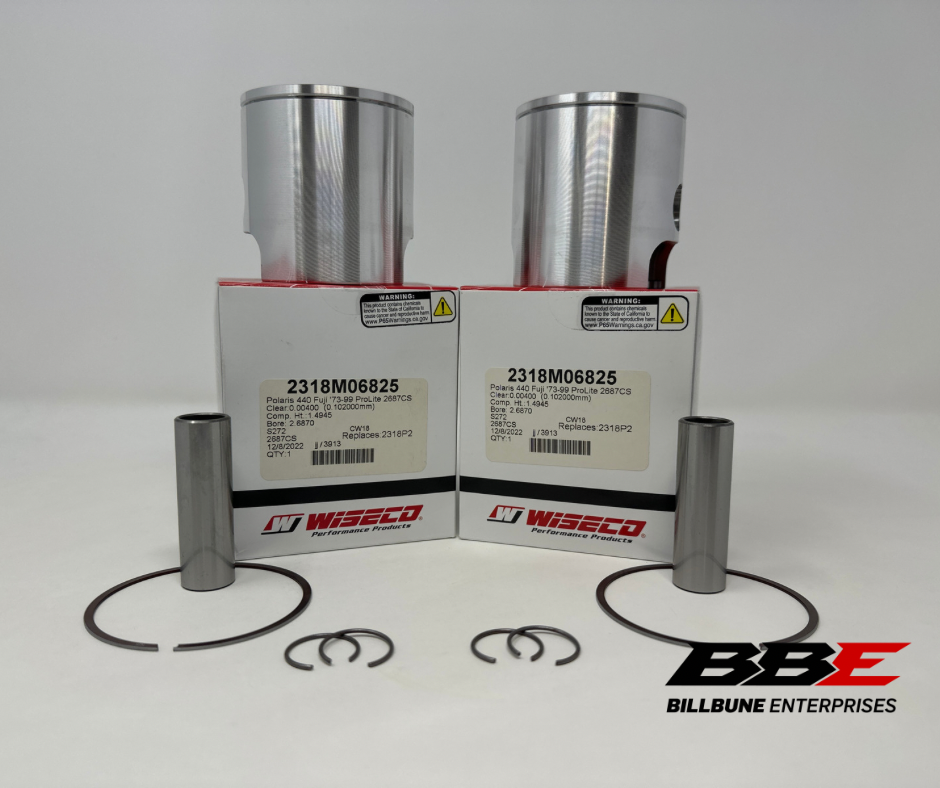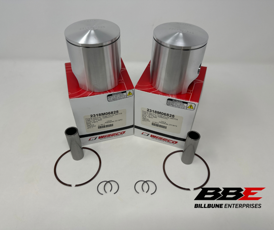Wiseco .50mm / .020" Oversized 68.25mm Bore Piston Kits. Includes (2) Pistons, (2) Sets of Rings, (2) Pins, (2) Pairs of clips.