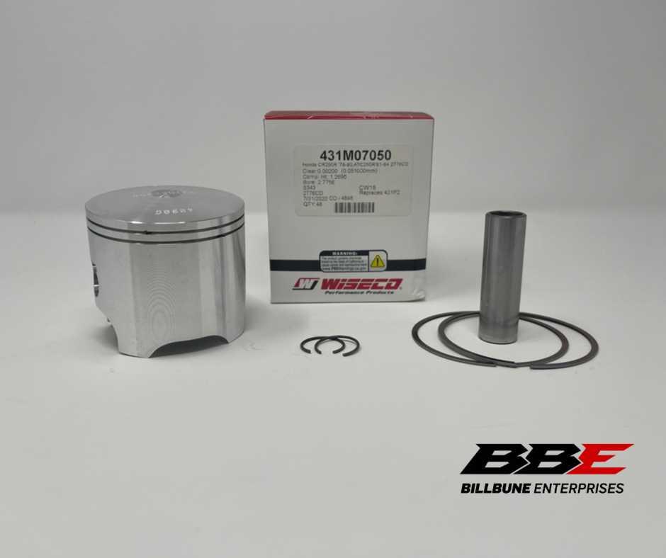 Wiseco .50mm / .020" Oversized 70.50mm bore piston kit. Includes piston, rings, pin, and clips. Top end bearing not included.