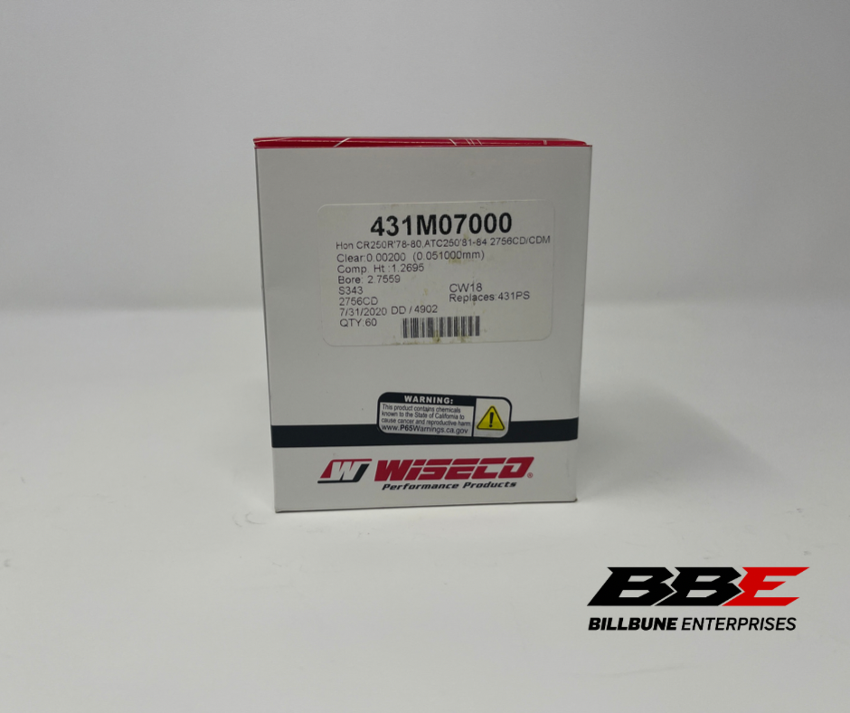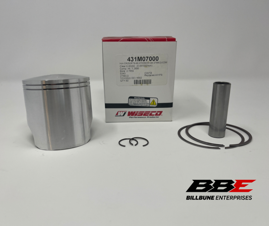 Wiseco standard / stock 70.00mm bore piston kit. Includes piston, rings, pin, and clips. Top end bearing not included.