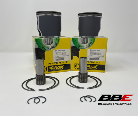 ProX Standard / Stock 72.00mm Bore Piston Kits. Includes (2) Pistons, (2) Sets of Rings, (2) Pins, (2) Pairs of Clips, (2) Top End Bearings.