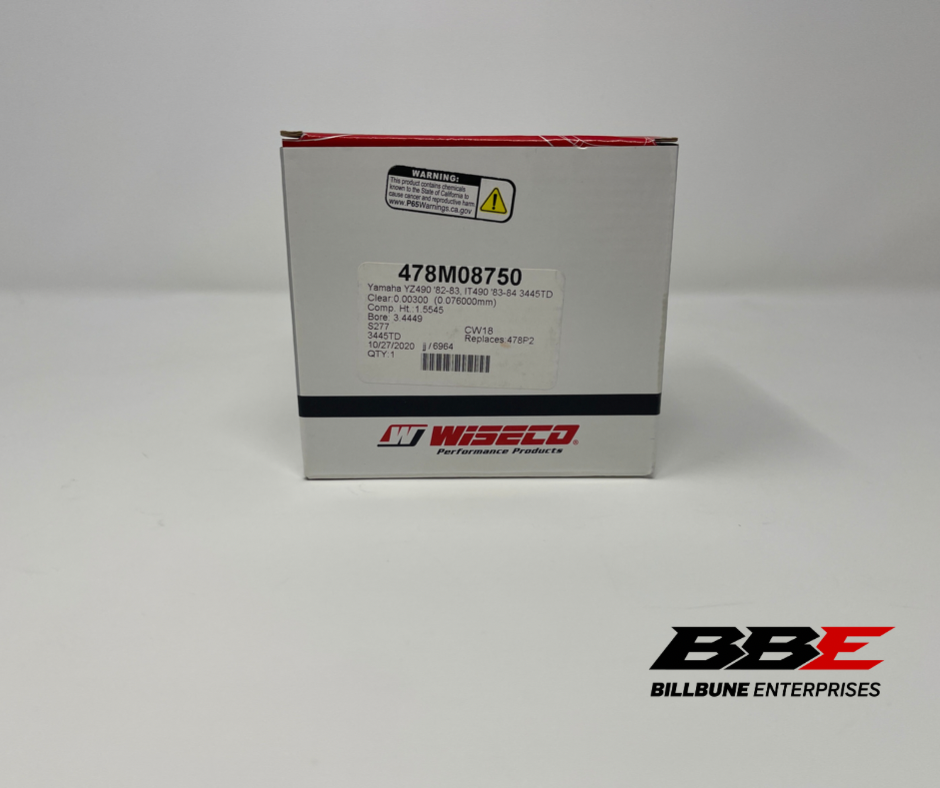 Wiseco .020" / .50mm oversized 87.50mm bore piston kit. Includes piston, rings, pin, and clips.