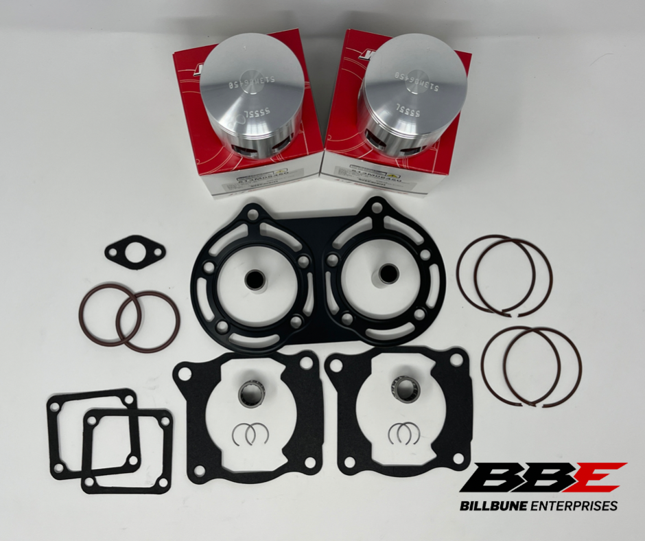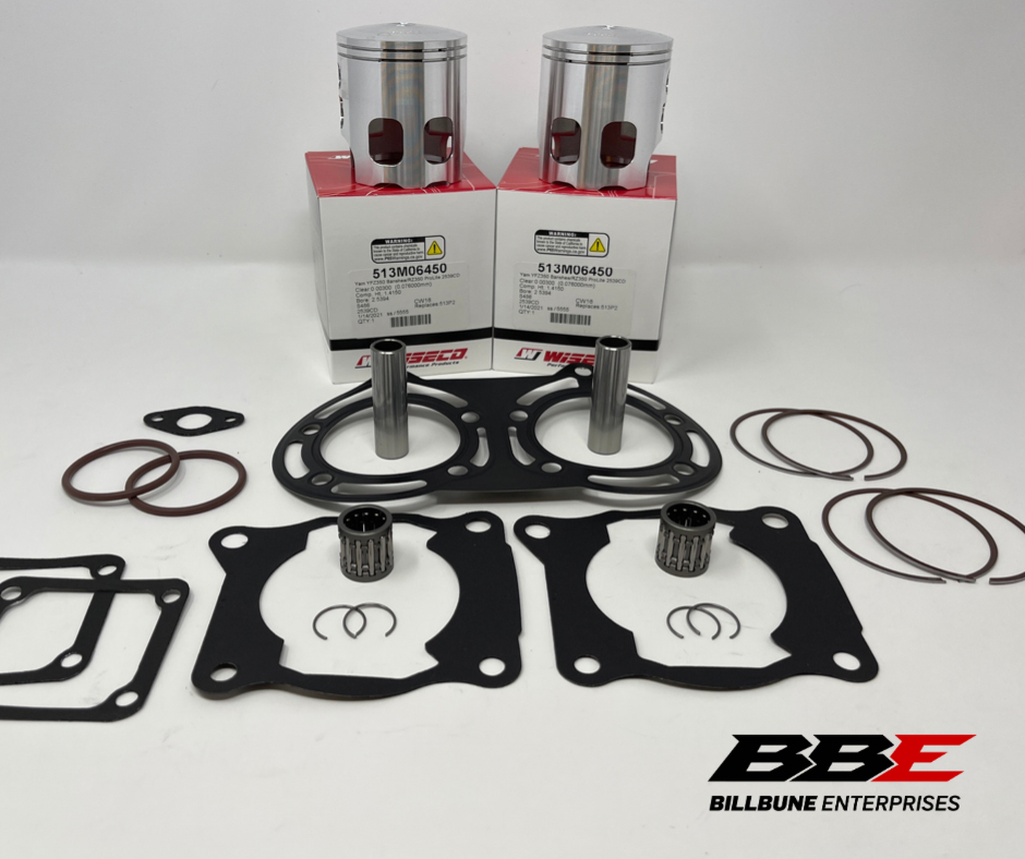 Wiseco .50mm / .020" oversized 64.50mm bore top end kit. Includes (2) pistons, (2) sets of rings, (2) pins, (2) pairs of clips, (2) top end bearings, and (1) top end gasket set.