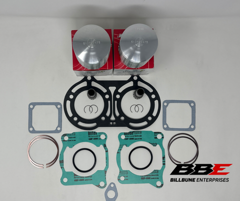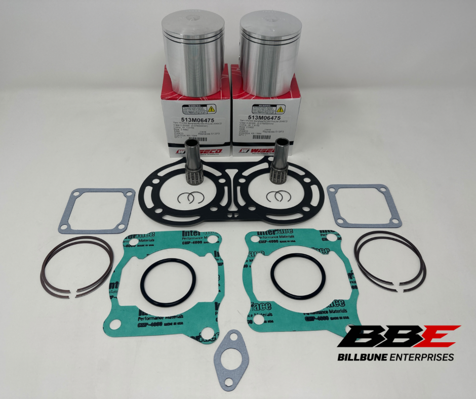 Wiseco / Vertex Top End Rebuild Kit .75mm / .030” Oversized 64.75mm bore piston kits and Vertex Top End Gasket Set. Includes (2) pistons, (2) sets of rings, (2) pins, (2) pairs of clips, (2) Top End Bearings, and (1) Top End Gasket Set.