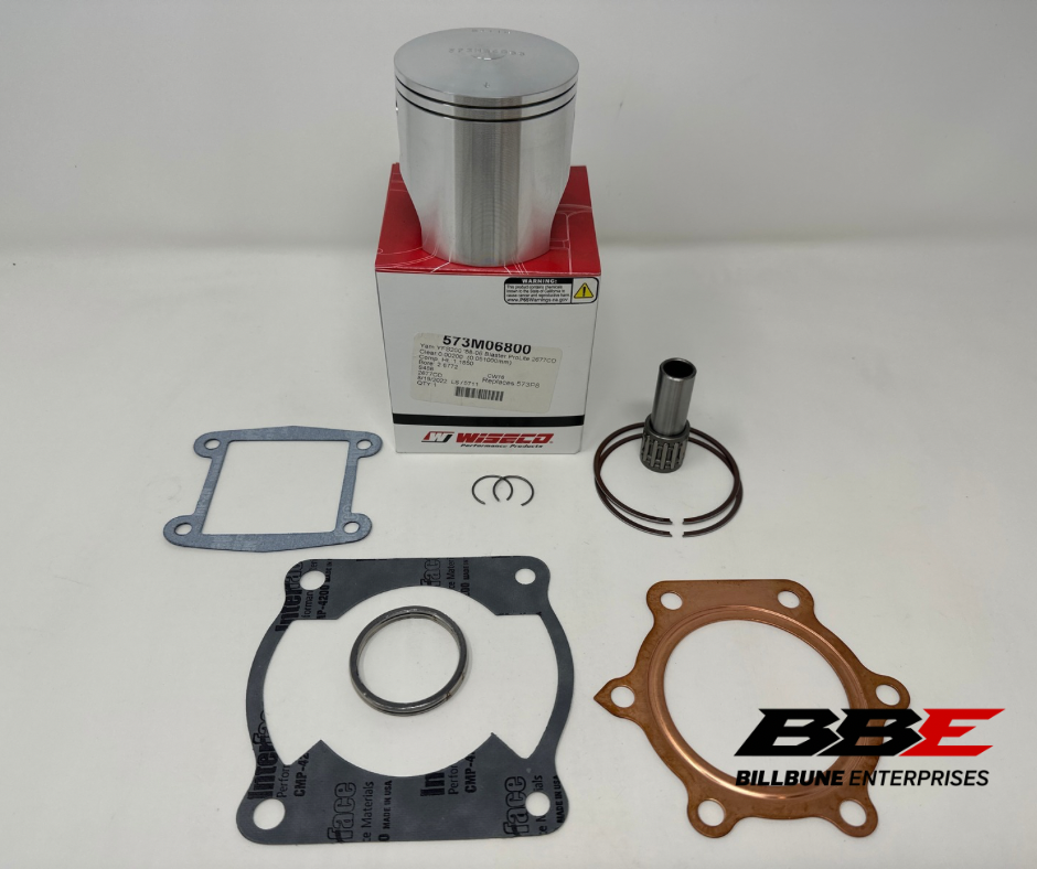 Wiseco / Vertex Top End Rebuild Kit 2.00mm / .080” Oversized 68.00mm bore piston kit and Vertex Top End Gasket Set. Includes piston, rings, pin, clips, top end bearing, and top end gasket set.