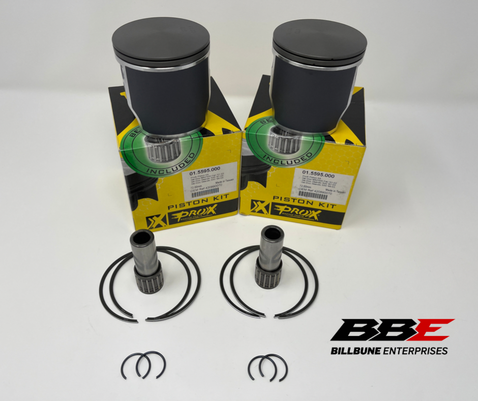 ProX Standard / Stock 72.00mm Bore Piston Kits. Includes (2) Pistons, (2) Sets of Rings, (2) Pins, (2) Pairs of C-Clips, and (2) Top End Bearings.