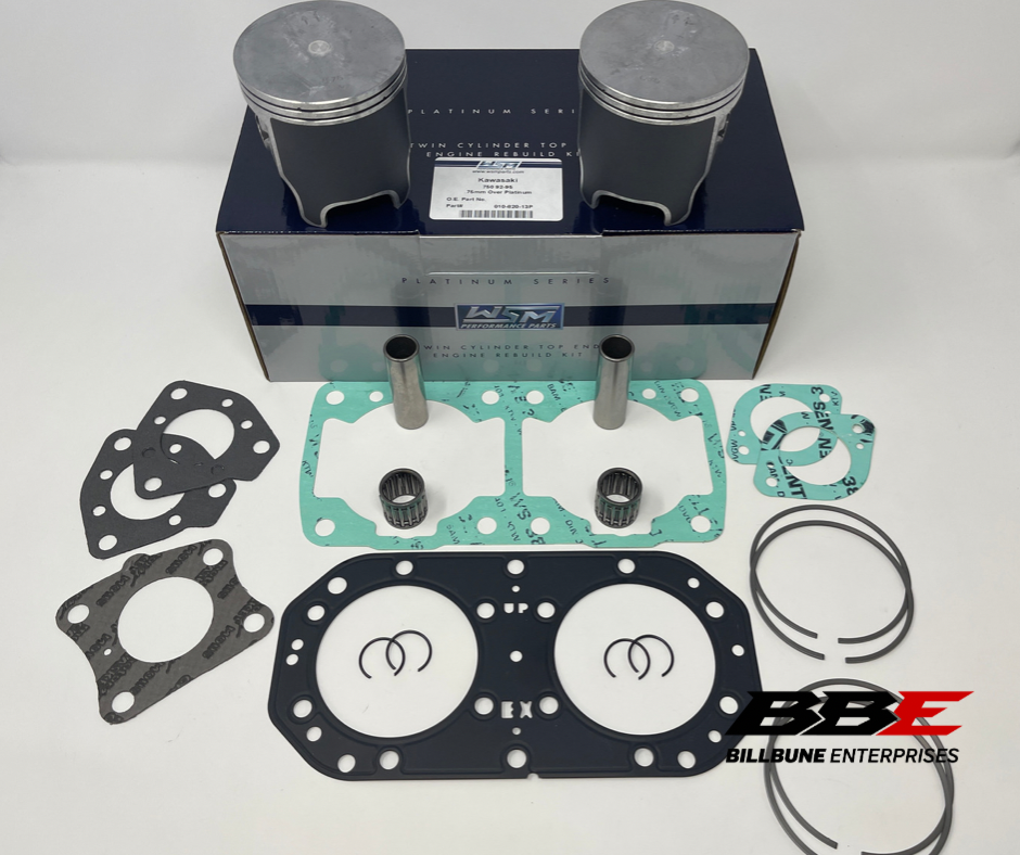 WSM platinum coated .030" / .75mm oversized 80.75mm bore top end kit. Includes (2) pistons, (2) sets of rings, (2) pins, (2) clips, (2) top end bearings, and (1) top end gasket set.