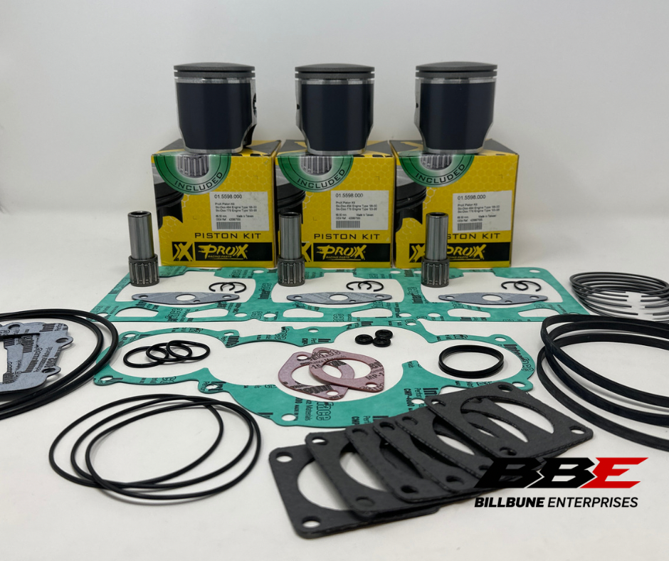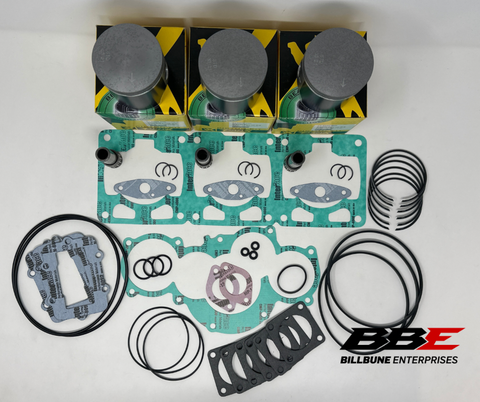 ProX / Vertex Top End Rebuild Kit. Standard / Stock 69.50mm Bore Piston Kits and Complete Top End Gasket Set. Includes (3) Pistons, (3) Sets of Rings, (3) Pins, (3) Pairs of C-Clips, (3) Top End Bearings, (1) Top End Gasket Set.