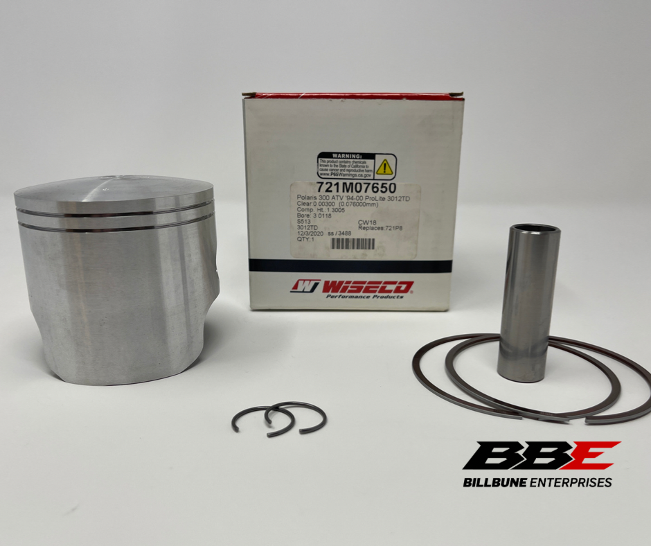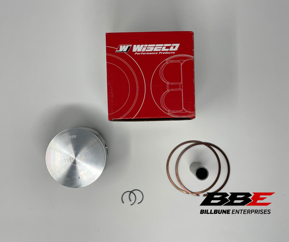 Wiseco .080" / 2.00mm oversized 76.50mm bore piston kit. Includes piston, rings, pin, and clips.