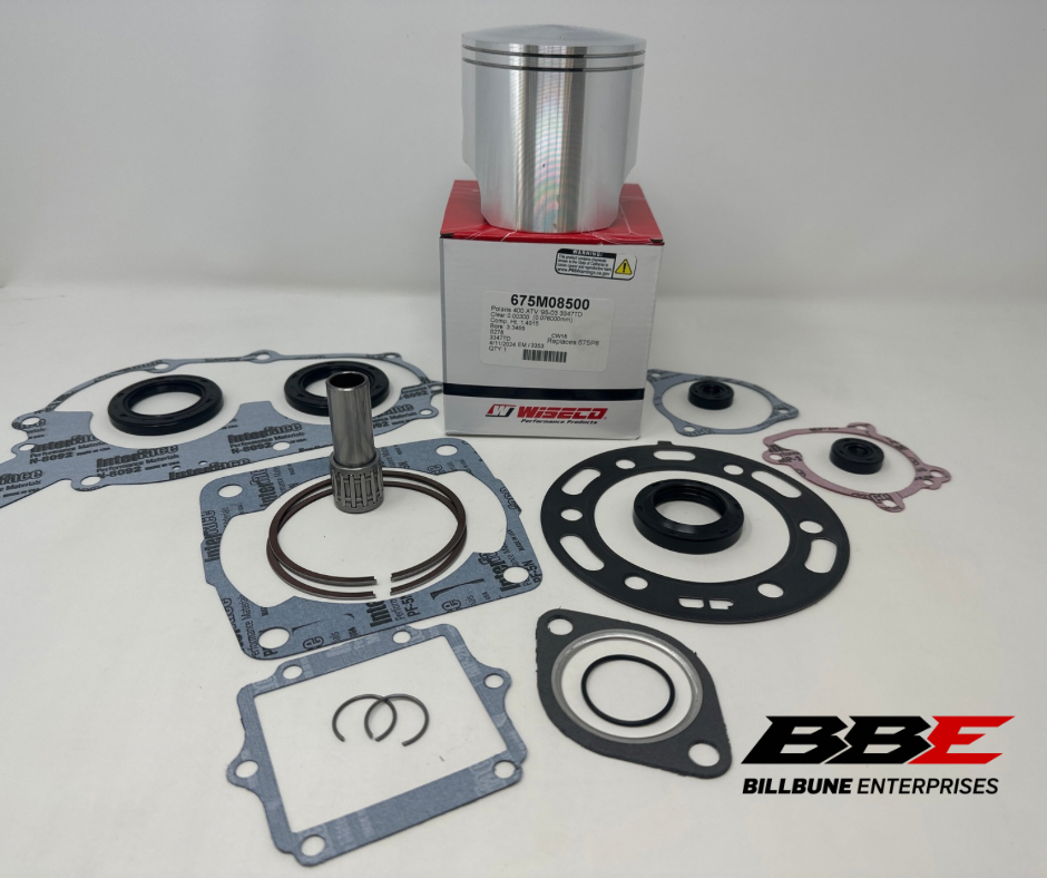 Wiseco / Vertex Engine Rebuild Kit 2.00mm / .080” Oversized 85.00mm bore piston kit and Complete Gasket Set With Seals. Includes piston, rings, pin, clips, top end bearing, and Complete Engine gasket set with oil seals.