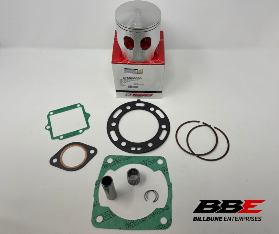 Wiseco standard / stock 83.00mm bore top end kit. Includes piston, rings, pin, clips, top end bearing, and top end gasket set.