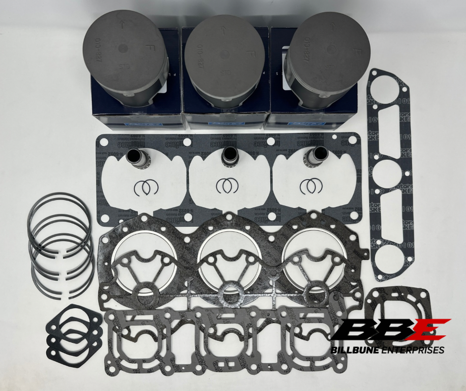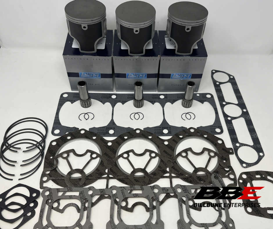 WSM Top End Rebuild Kit .50mm / .020” Oversized 81.50mm Bore Platinum Series Piston Kits and Complete Top End Gasket Set. Includes (3) Pistons, (3) Sets of Rings, (3) Pins, (3) Pairs of Clips, (3) Top End Bearings, and (1) Top End Gasket Set.