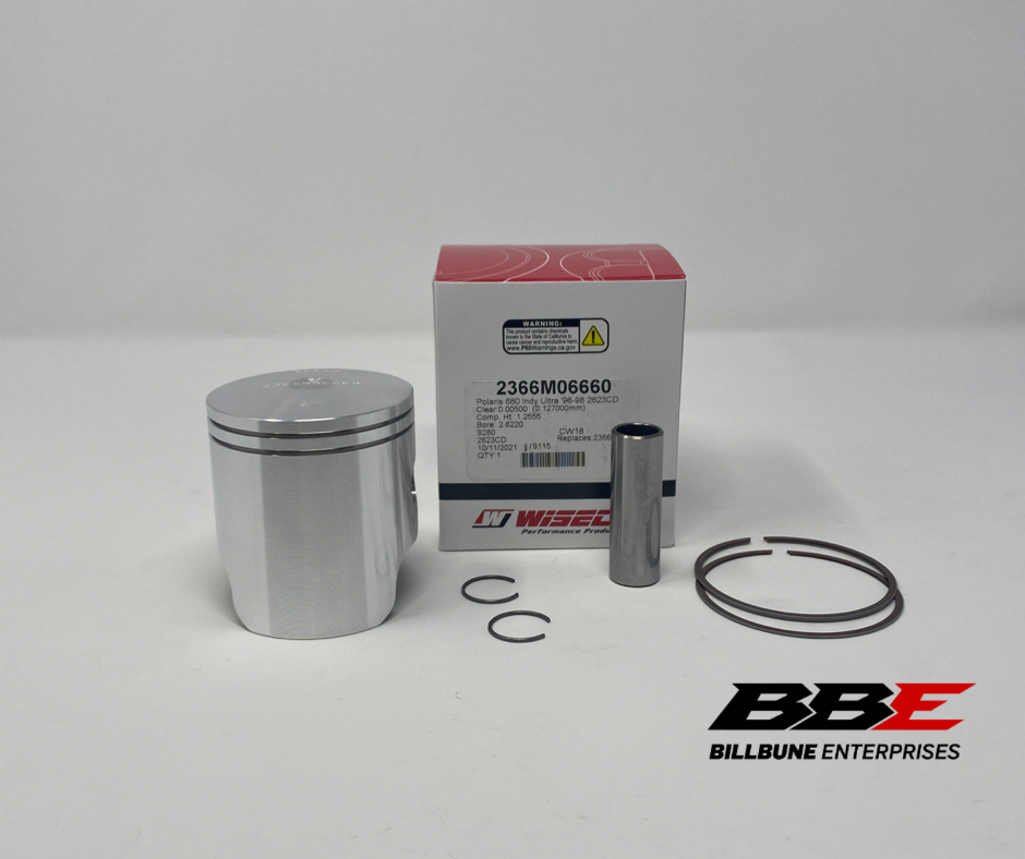Wiseco Stock / Standard 66.60mm Bore Piston Kit. Includes piston, rings, pin, and clips. Top end bearings not included.