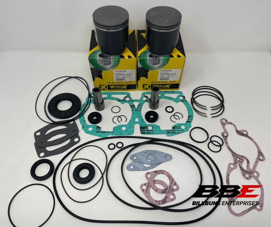 ProX / Vertex Engine Rebuild Kit .50mm / .020” Oversized 70.00mm Bore Piston Kits and Complete Engine Gasket Set With Crankshaft Oil Seals. Includes (2) Pistons, (2) Sets of Rings, (2) Pins, (2) Pairs of C-Clips, (2) Top End Bearings, (1) Gasket Set with Seals.