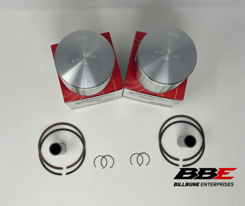 Wiseco Standard / Stock 78.00mm Bore Piston Kits. Includes (2) Pistons, (2) Sets of Rings, (2) Pins, and (2) Pairs of Clips.