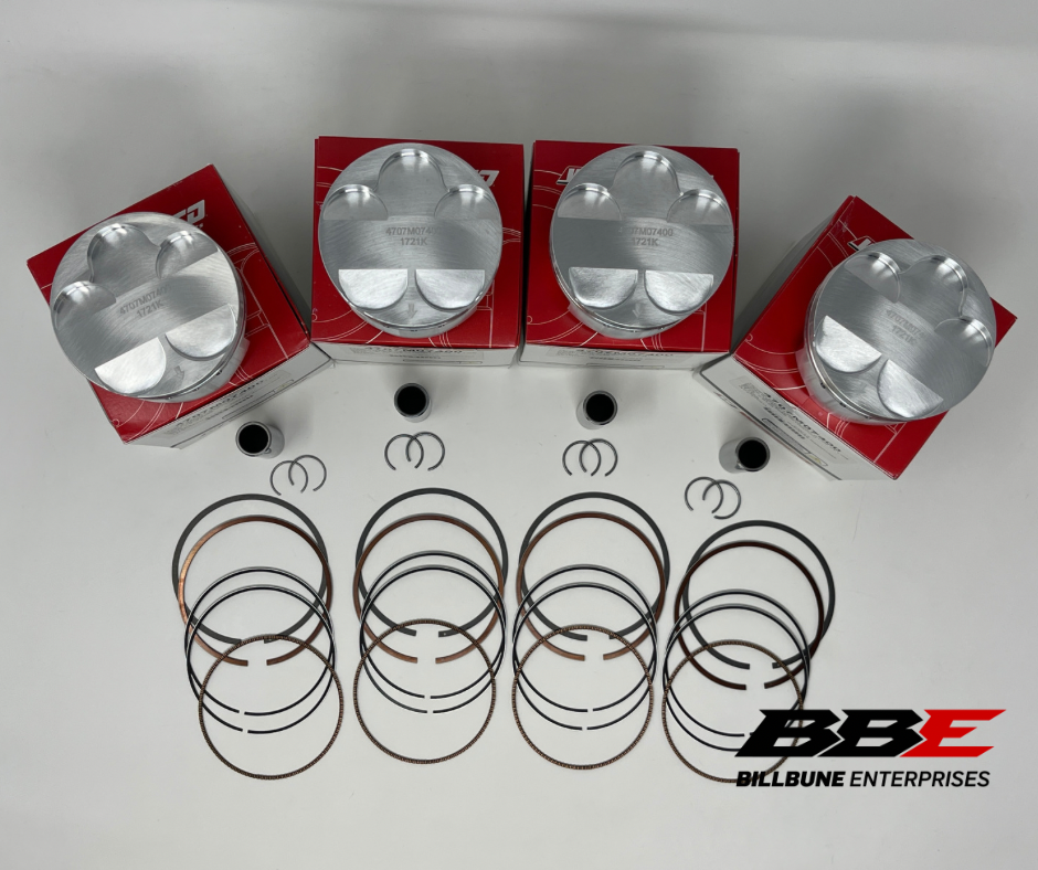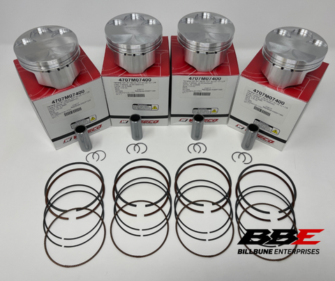 Wiseco standard / stock 74.00mm bore piston kits. 13:1 Compression ratio. Includes (4) pistons, (4) sets of rings, (4) pins, (4) pairs of c-clips.