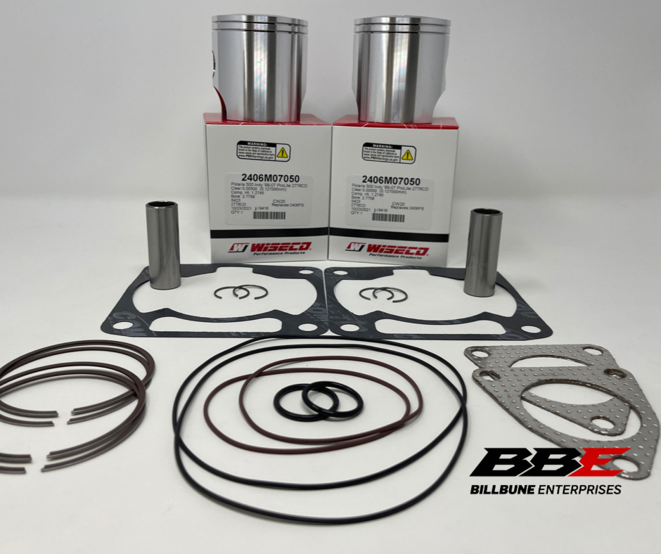 Wiseco top end kit standard / stock 70.50mm bore piston kits. Includes (2) pistons, (2) sets of rings, (2) pins, (2) pairs of c-clips, (1) top end gasket set (No top end bearings included)