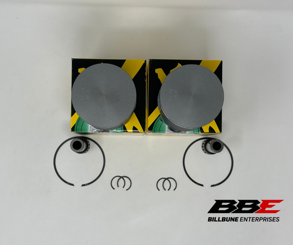 ProX .50mm / .020" Oversized 76.50mm Bore Piston Kits. Includes (2) Pistons, (2) Sets of Rings, (2) Pins, (2) Pairs of C-Clips, and (2) Top End Bearings.