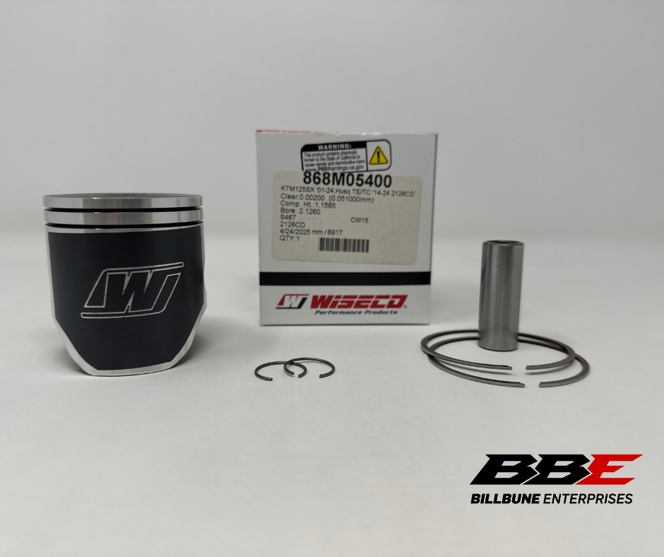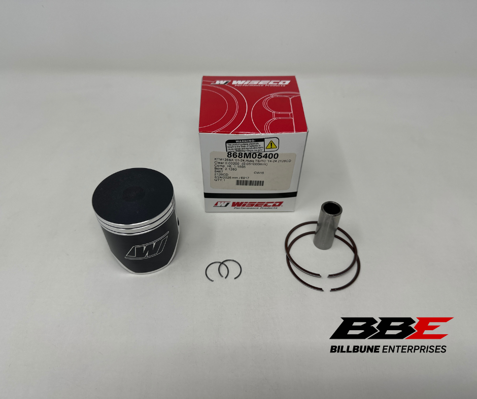Wiseco GP Series stock / standard 54.00mm bore Dual Ring piston kit. Includes piston, rings, pin, and clips.
