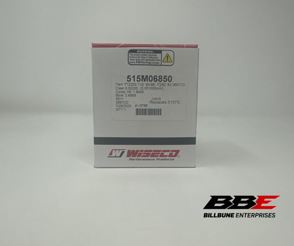 Wiseco .020” / .50mm Oversized 68.50mm Bore Piston Kit. Includes Piston, Rings, Pin, and Clips.