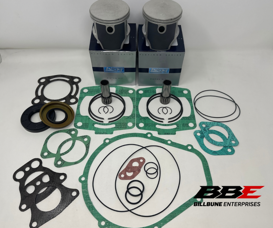 WSM Engine Rebuild Kit .75mm / .030” Oversized 81.75mm Bore Piston Kits and Complete Engine Gasket Set With Crankshaft Oil Seals. Comes With (2) Pistons, (2) Sets Of Rings, (2) Pins, (2) Sets of Clips, (2) Top End Bearings, And (1) Complete Gasket Set With Crankshaft Seals.