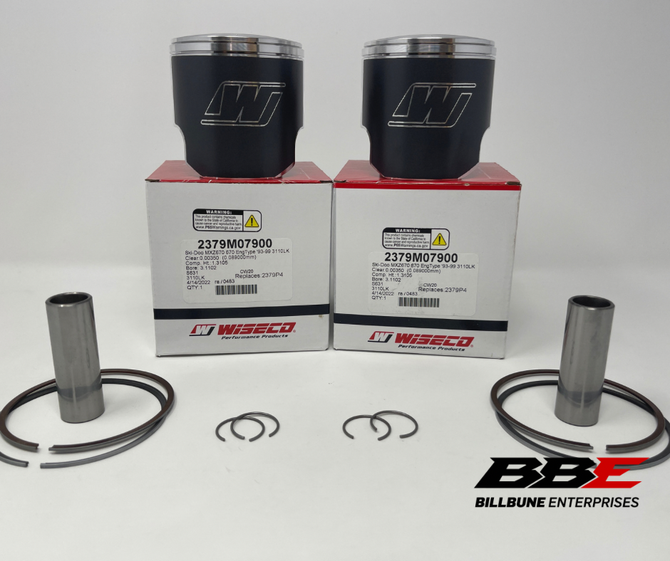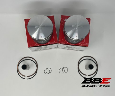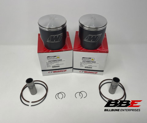 Wiseco 1.00mm / .040” 79.00mm Bore Piston Kits. Includes (2) Pistons, (2) Sets of Rings, (2) Pins, (2) Pairs of C-Clips.