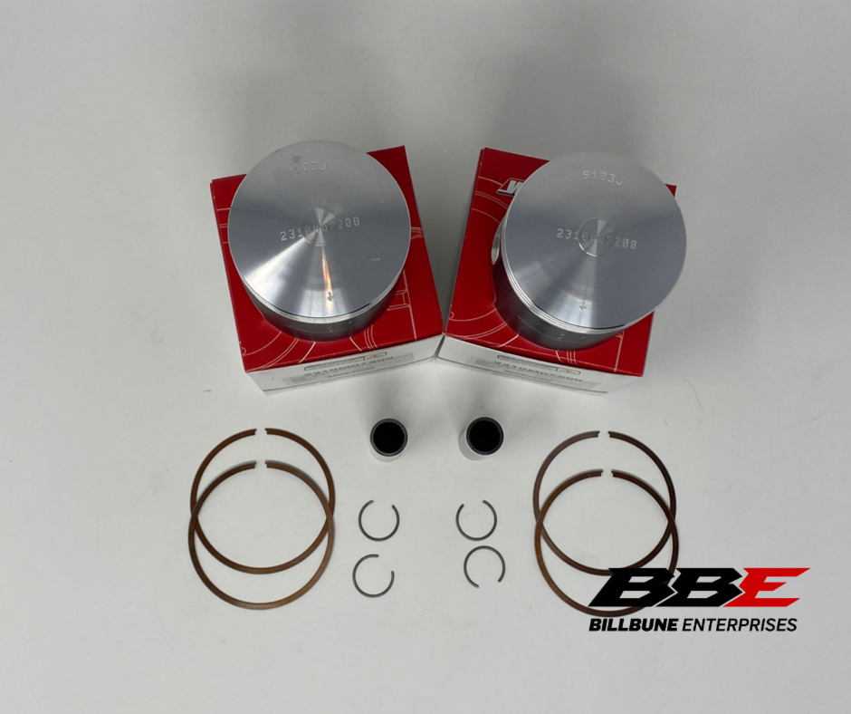 Wiseco Standard / Stock 72.00mm Bore Piston Kits. Includes (2) pistons, (2) sets of rings, (2) pins, and (2) pairs of clips. Top end bearings not included.