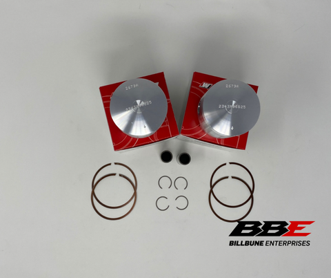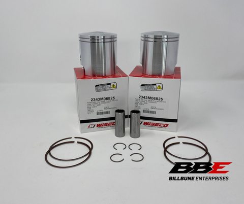 Wiseco .50mm / .020" Oversized 68.25mm Bore Piston Kits. Includes (2) pistons, (2) sets of rings, (2) pins, and (2) pairs of clips. Top end bearings not included.