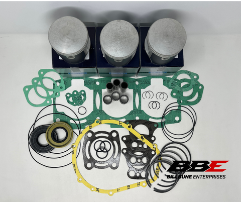 WSM 1.00mm / .040” Oversized 82.00mm Bore Rebuild Kit. Comes with (3) Pistons, (3) Sets of Rings, (3) Pins, (3) Sets of Clips, (3) Top end Bearings, and (1) Complete Gasket set With Crankshaft Oil Seals.