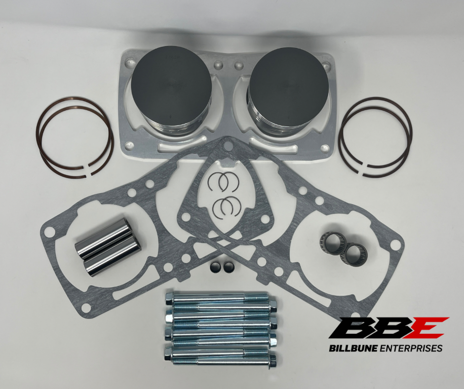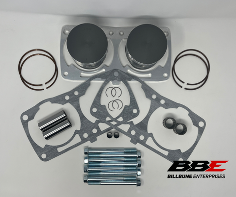New “Fix it” or “durability kit” With Wiseco Forged Stock / Standard 85.00mm Bore Piston Kits. Comes with (2) pistons, (2) sets of rings, (2) pins, (2) pairs of clips, (2) top end rod bearings, (1) Spacer kit (2 base gaskets, dowl pins, bolts, and spacer)